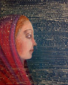 Maria – Ausschnitt aus Pontormos Gemälde “ Heimsuchung“, Acryl und Goldstift auf Leinwand, 80 x 60 cm, 2004